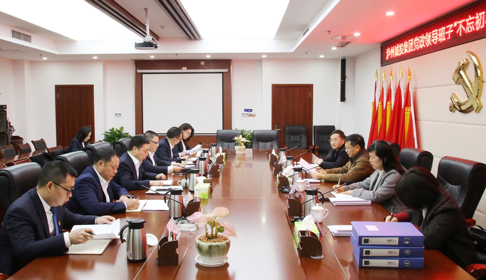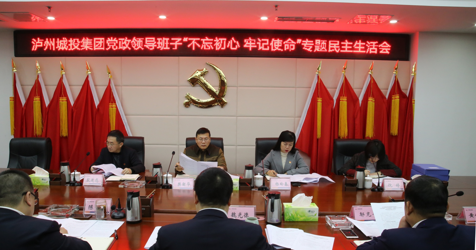 12月10日,瀘州城投集團(tuán)召開黨政領(lǐng)導(dǎo)班子“不忘初心、牢記使命”專題民主生活會。會議由集團(tuán)黨委書記、董事長魏光德主持,市委第一巡回指導(dǎo)組副組長樊朝華,市不動產(chǎn)登記中心信息科干部倪婷,兩江新城黨工委委員、兩江新城管委會副主任楊玲春,集團(tuán)監(jiān)事會主席殷廷彪到會指導(dǎo)并作點(diǎn)評發(fā)言,集團(tuán)黨政領(lǐng)導(dǎo)班子成員參加會議。