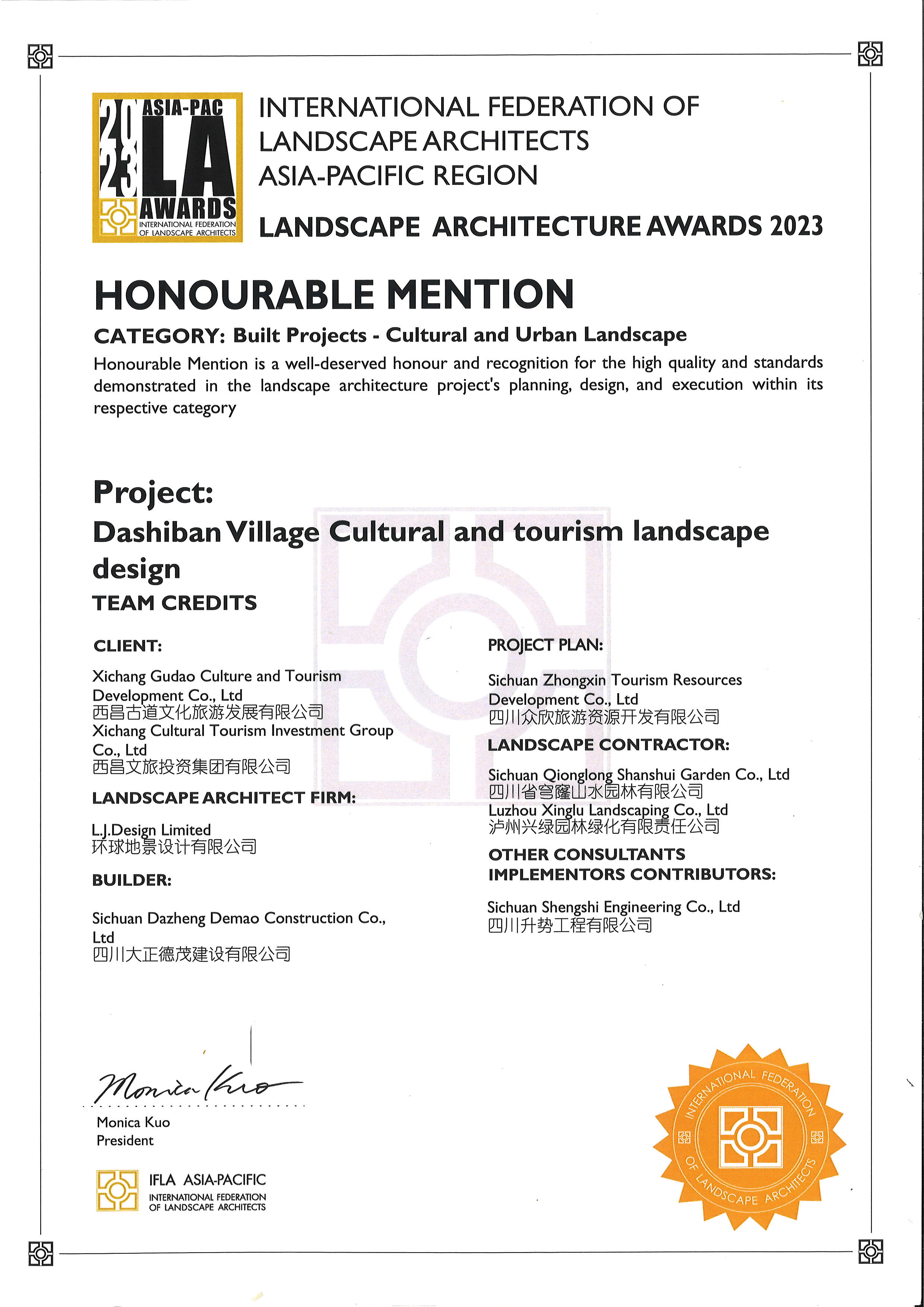 喜訊!瀘州城投集團(tuán)興綠園林公司榮獲2023IFLA(國際風(fēng)景園林師聯(lián)合會)景觀建筑榮譽獎