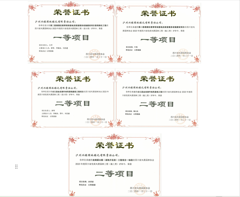 喜報!瀘州城投集團興綠園林公司多個項目榮獲2023年度四川省優(yōu)質(zhì)風(fēng)景園林工程獎