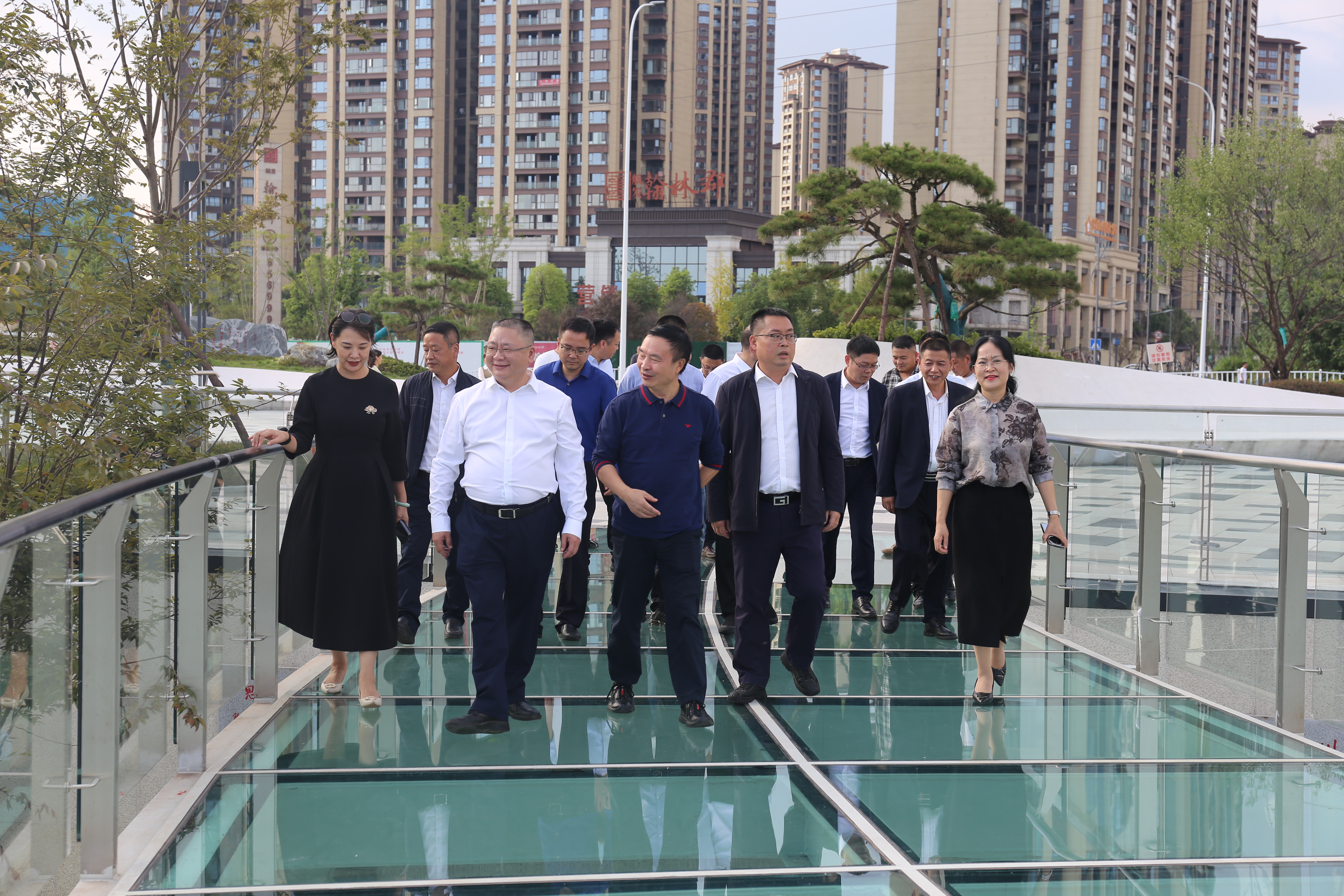 交流座談會(huì)之前,王勁一行參觀考察了兩江控股集團(tuán)下屬子公司興綠園林公司建設(shè)的九獅路及高鐵站前廣場項(xiàng)目,詳細(xì)了解該項(xiàng)目設(shè)計(jì)理念、設(shè)施配套、施工實(shí)際效果等情況,對(duì)充分展示了瀘州特色和深厚的酒文化底蘊(yùn)的“干杯”建筑給予了高度評(píng)價(jià)。