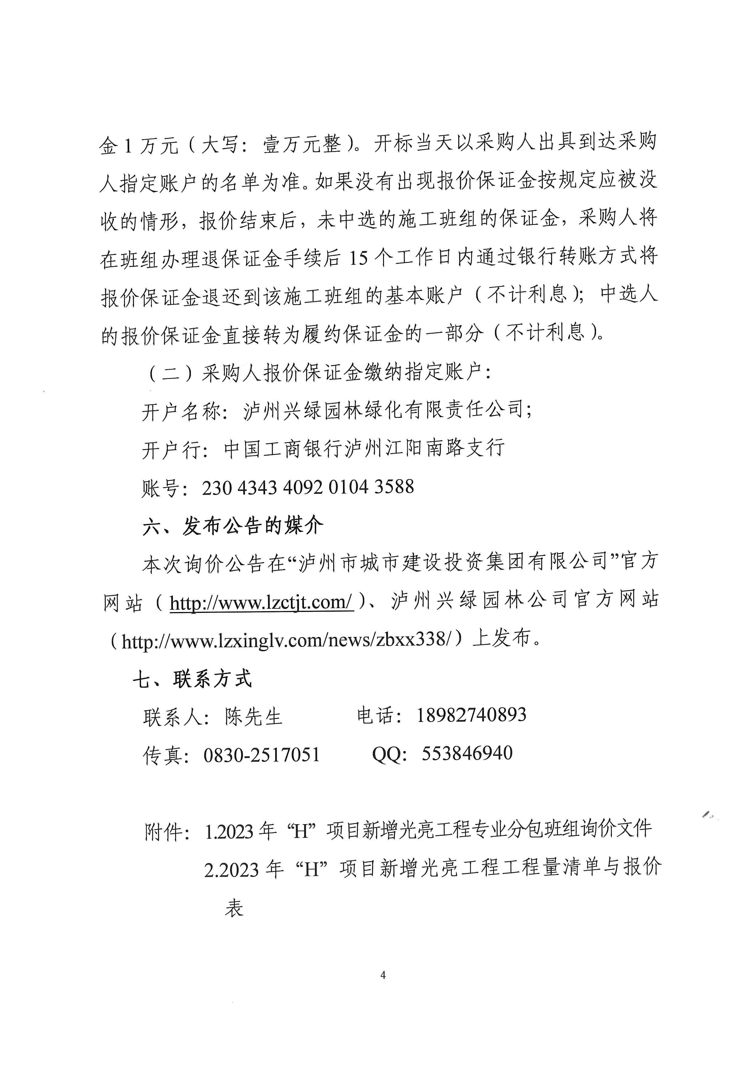 2023年“H”項目新增光亮工程專業(yè)分包班組詢價公告