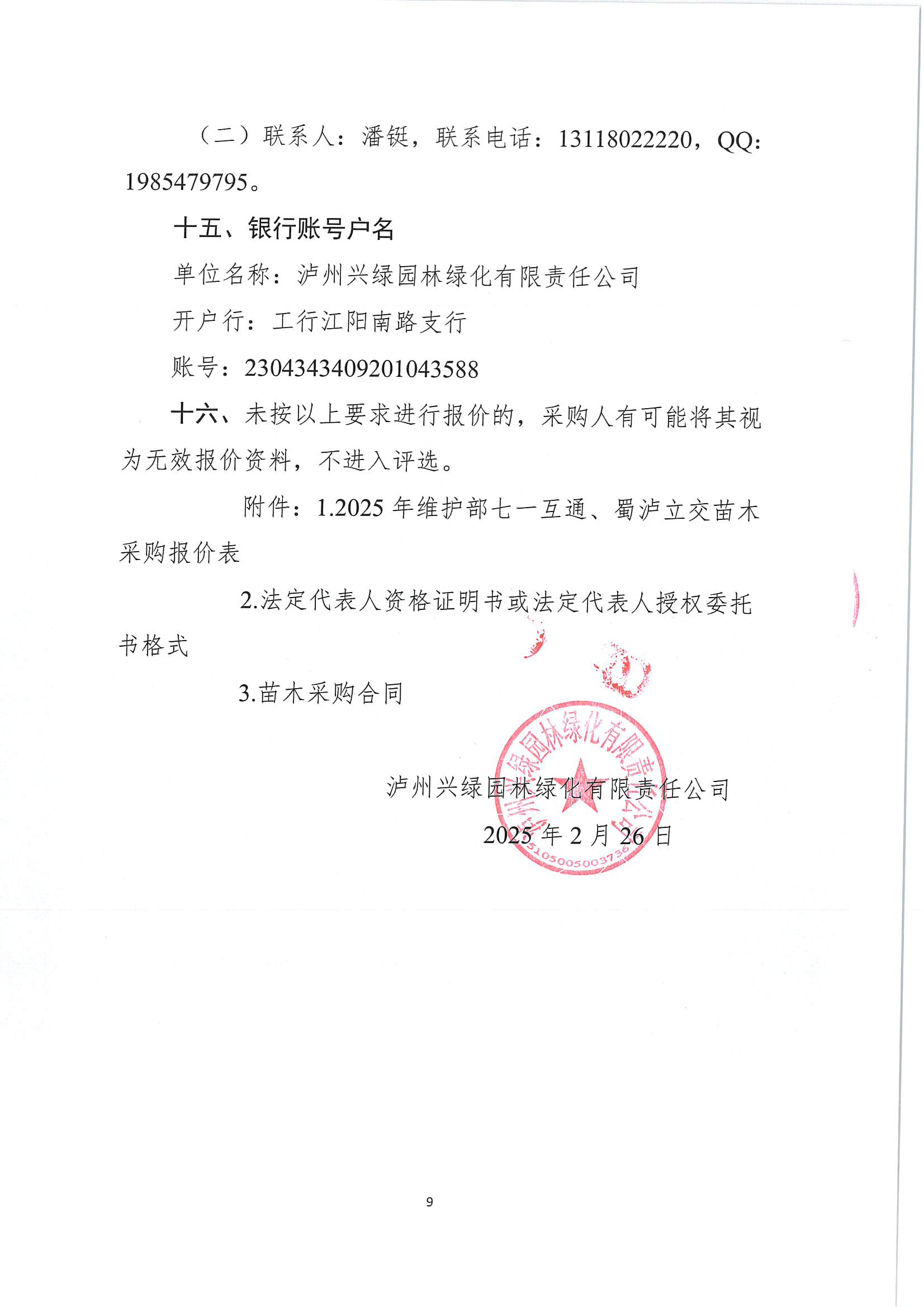 瀘州興綠園林綠化有限責(zé)任公司關(guān)于2025年維護(hù)部七一互通、蜀瀘立交苗木 采購(gòu)詢(xún)價(jià)文件