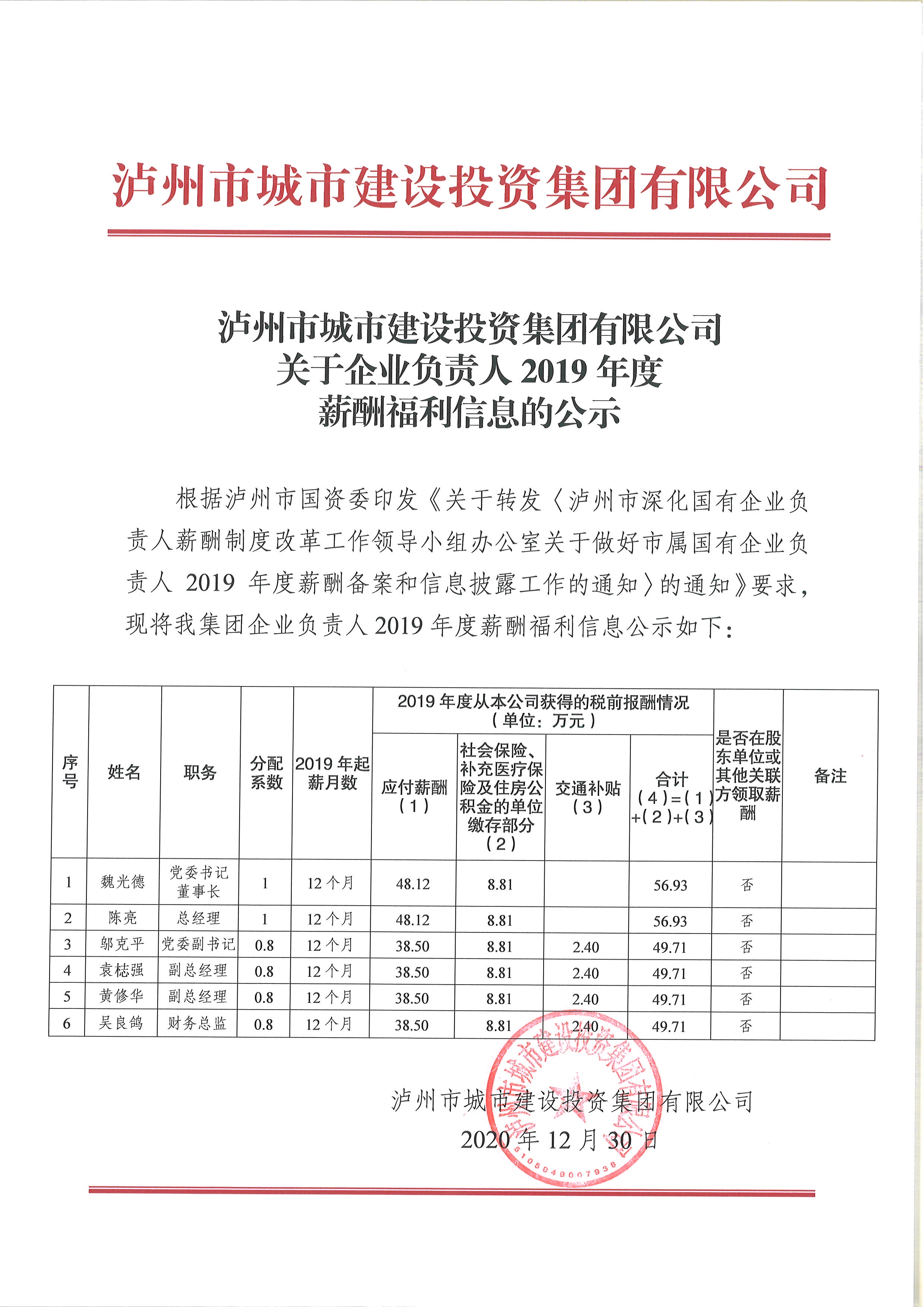 關(guān)于企業(yè)負責人2019年度薪酬福利信息的公示